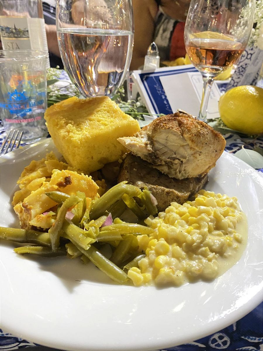 All hands were on deck as dinner started. Tomato bisque prepared by Marquart's Landing and summer salad prepared by Miller's Grill started off the food festivities. Followed by the main entree(s), yes there is a an "s" behind entree! Beef brisket prepared by Wholesome Meats and White Mule Winery, Applewood smoked chicken prepared by Tilted Skillet, coffee rubbed pork loin prepared by Mosaic Cafe and Catering. This entree was adorned with mouthwatering sides, including fresh green beans prepared by Joe's Bakery and Delicatessen, a roasted corn casserole prepared by Old Dutch Tavern and cheesy au gratin potatoes prepared by Cowan's Restaurant. A sweet corn bread provided by Sugarfire Smoke House and Rolls from Pasta House Co. topped off the meal.